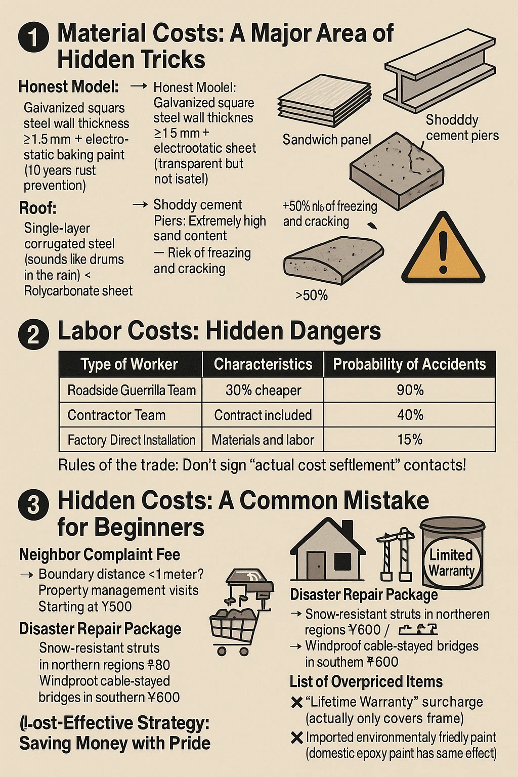 | Fly-by-Night Crews(ロードサイドの「専門家」) | • 現金のみの割引• 「Trust me」握手セール | 90% | ← 数カ月で溶接部が錆びる← 最初の嵐で屋根が雨漏り |